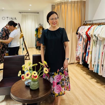 Đầm tơ hoa nền đen