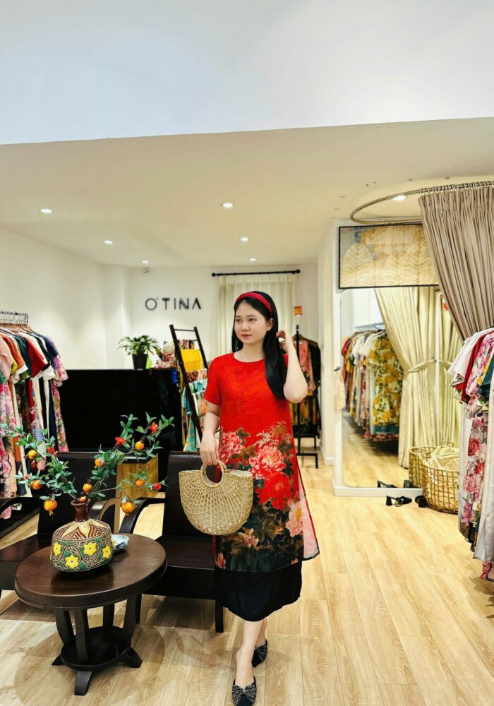 Đầm mẫu đơn hai tà đỏ