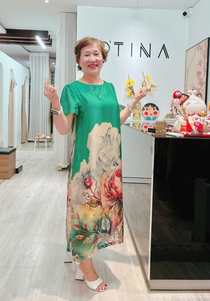 Đầm tơ hoa xuân xanh