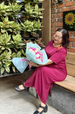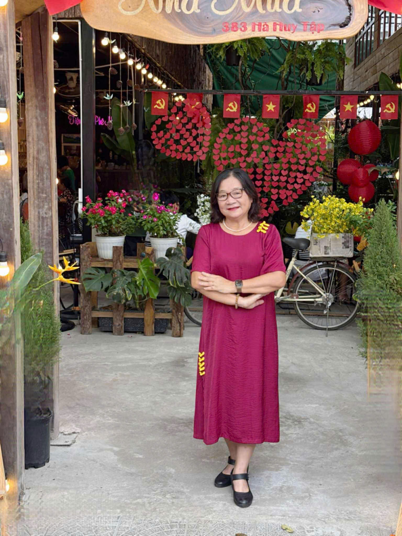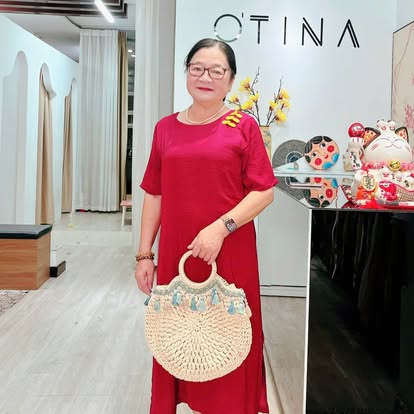 Đầm Thanh Bình – lụa tằm kết nút đỏ