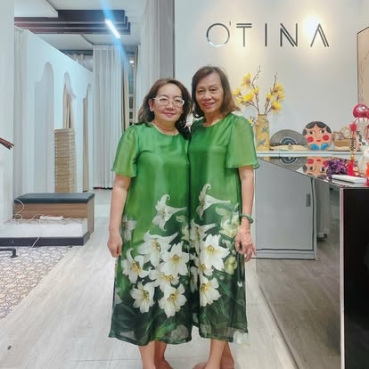 Đầm tơ loa kèn xanh