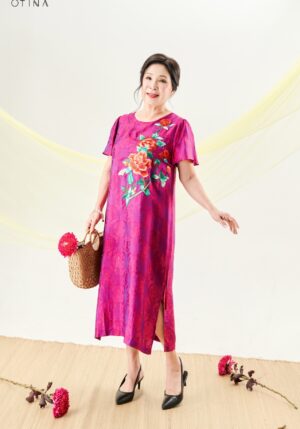 Đầm Đông Liên – lụa tơ tằm đào tím