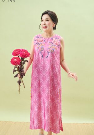 Đầm Hoàng Yến – tơ tằm mẫu đơn hồng kết nút