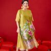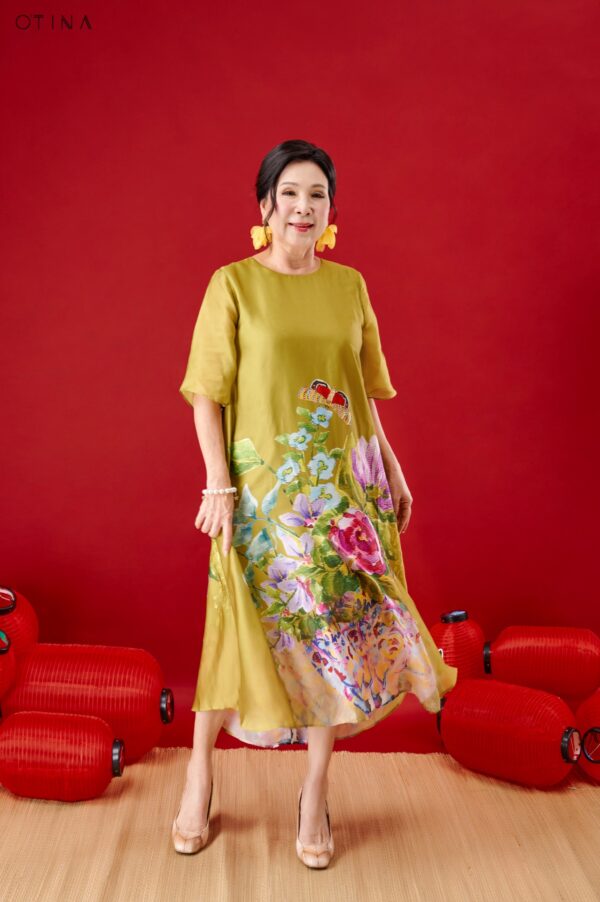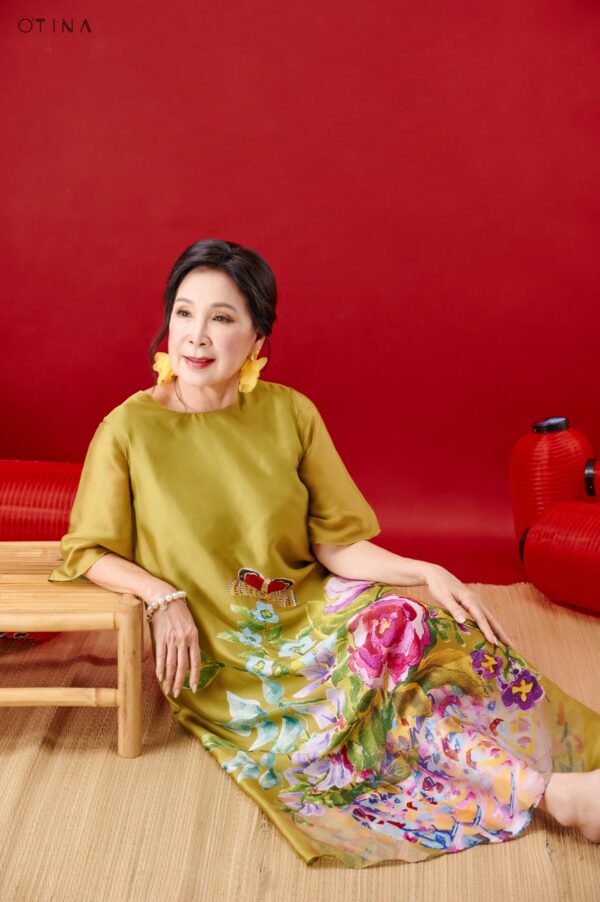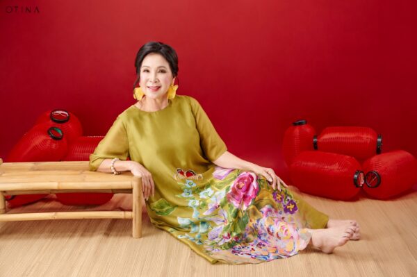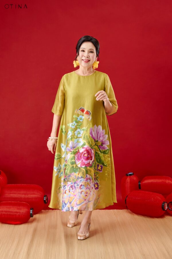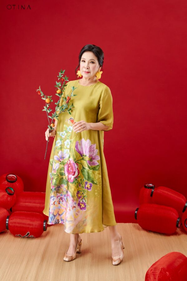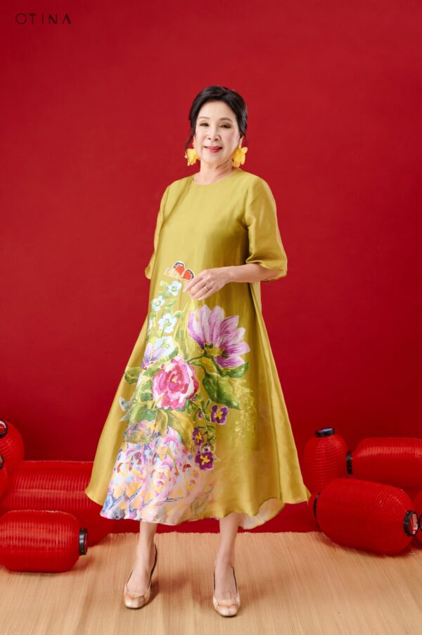 Đầm Hoàng Yến – tơ ngọc hoa xanh là thiết kế nhẹ nhàng nhưng không kém phần nổi bật.