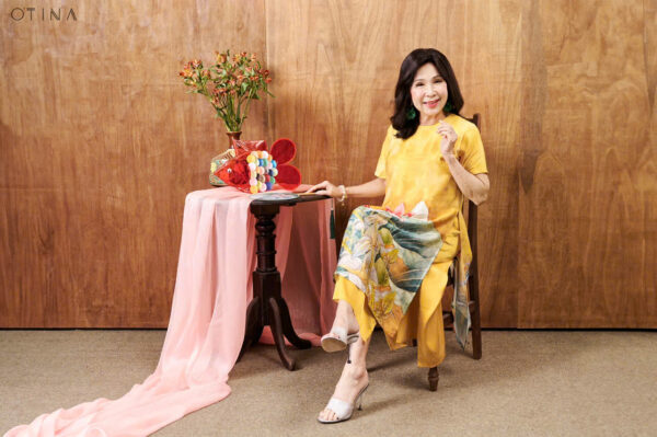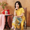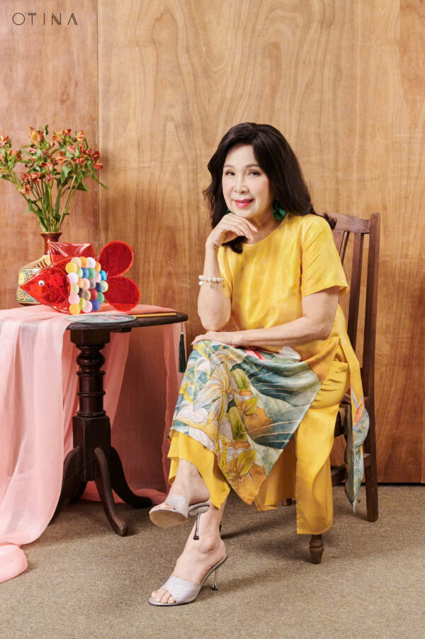 Đầm Xuân Vũ – hai tà sen vàng là thiết kế nhẹ nhàng nhưng không kém phần nổi bật.