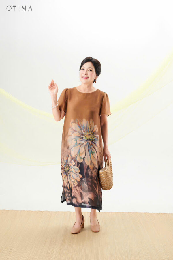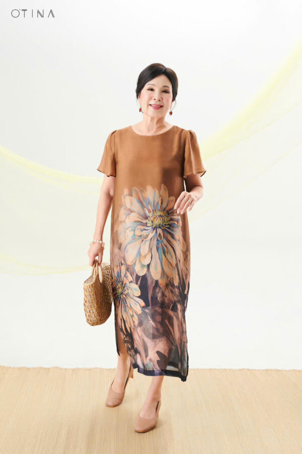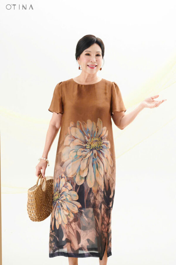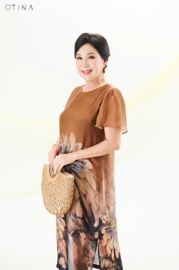 Đầm Xuân Vũ – lụa tơ tằm dược đồng là thiết kế nhẹ nhàng nhưng không kém phần nổi bật.