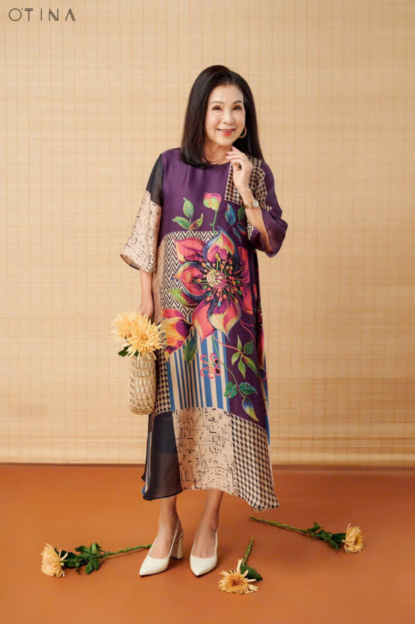 Đầm Xuân Vũ – lụa tơ tằm mẫu đơn tím